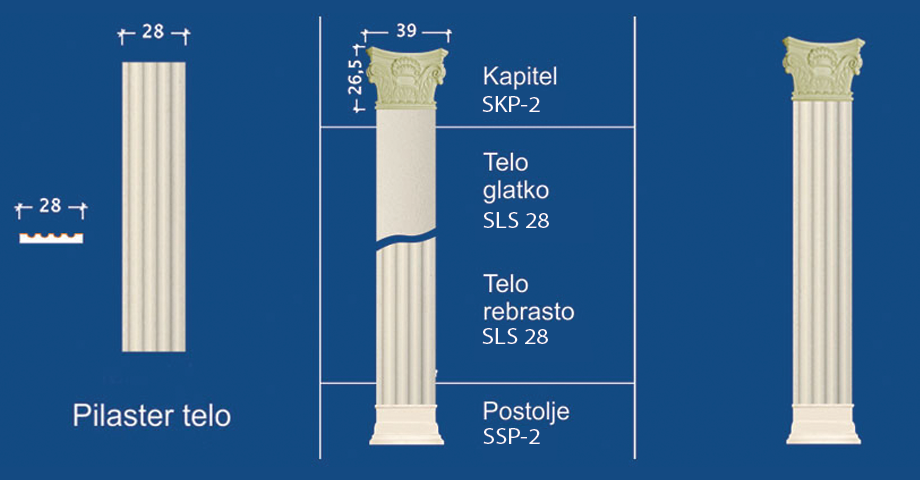 - kapitela (standardizovanih dimenzija i za određenu dimenziju pilastera).