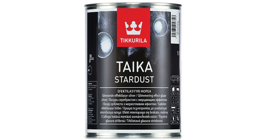 Upotreba: Pre upotrebe dobro promešati Taika Stardust. Primeniti proizvod sa valjkom ili četkom u unakrsnim potezima. Voditi računa da se proizvod ravnomerno nanosi na celoj površini. Kako rad napreduje, preklapanja treba da izblede. Kako se površina isušuje mlečni izgled će da nestane. Preporučena je proba na debelom kartonu ili drugoj test površini. Taika Stardust takođe može biti upotrebljena za šablone i primenjuje se sa malim valjkom ili četkom. Ne preporučujemo upotrebu alata od pene. Ponovno premazivanje nakon 24 sata. Potpuno suv za oko 2 dana. Alat oprati sa vodom. Ukloniti ostatke boje/laka sa alata i očistiti vodom. Za čišćenje neznatno očvrsle glazure, preporučujemo Tikkurila Pensselipesu (sredstvo za čišćenje alata).